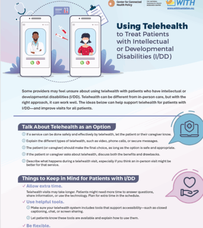 Some providers may feel unsure about using telehealth with patients who have intellectual or developmental disabilities (I/DD). Telehealth can be different from in-person care, but with the right approach, it can work well. The ideas in this factsheet can help support telehealth for patients with I/DD—and improve visits for all patients.